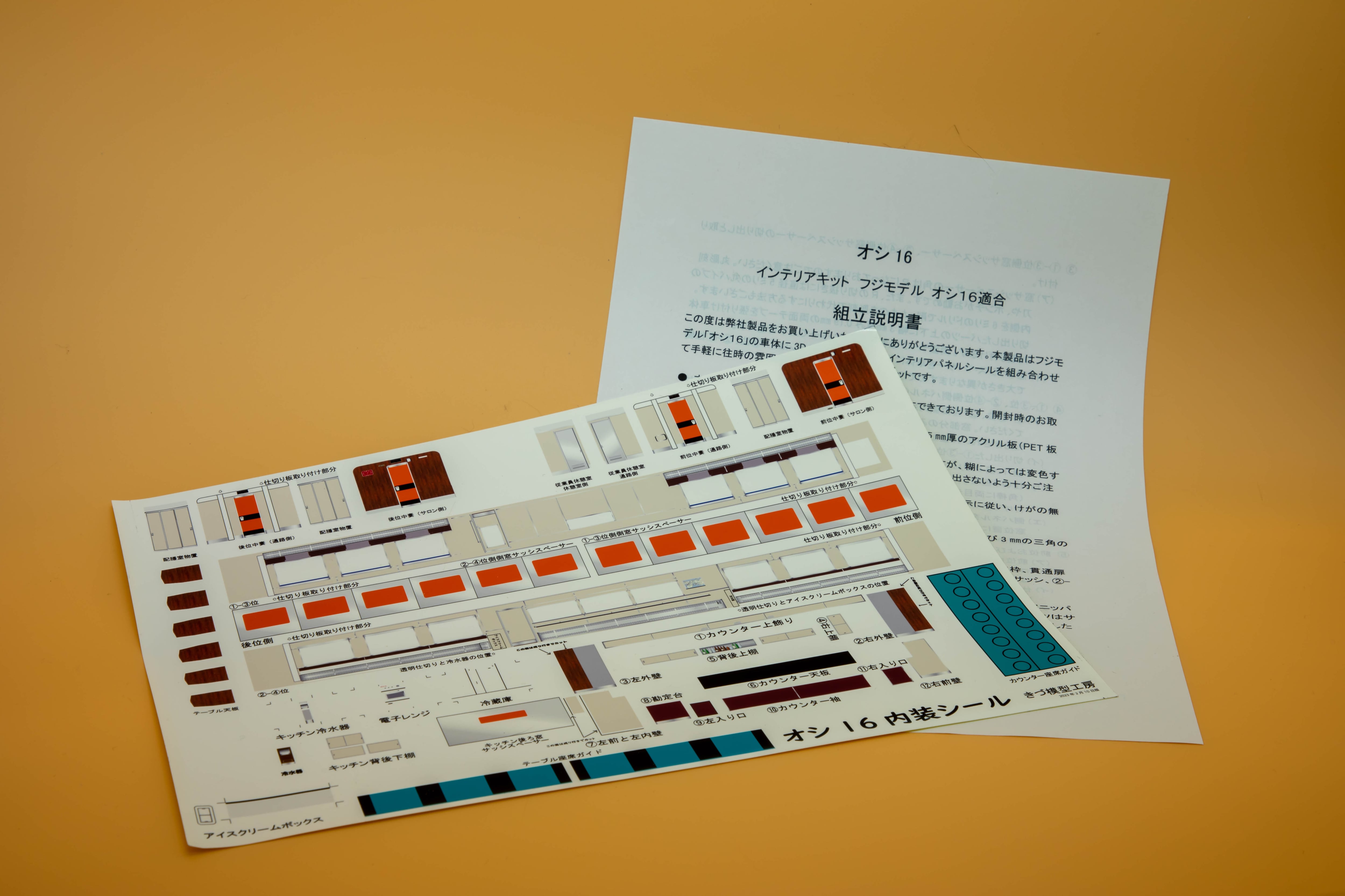 3Dプリンターで出力したパーツと、内装シールを含めたキットです。