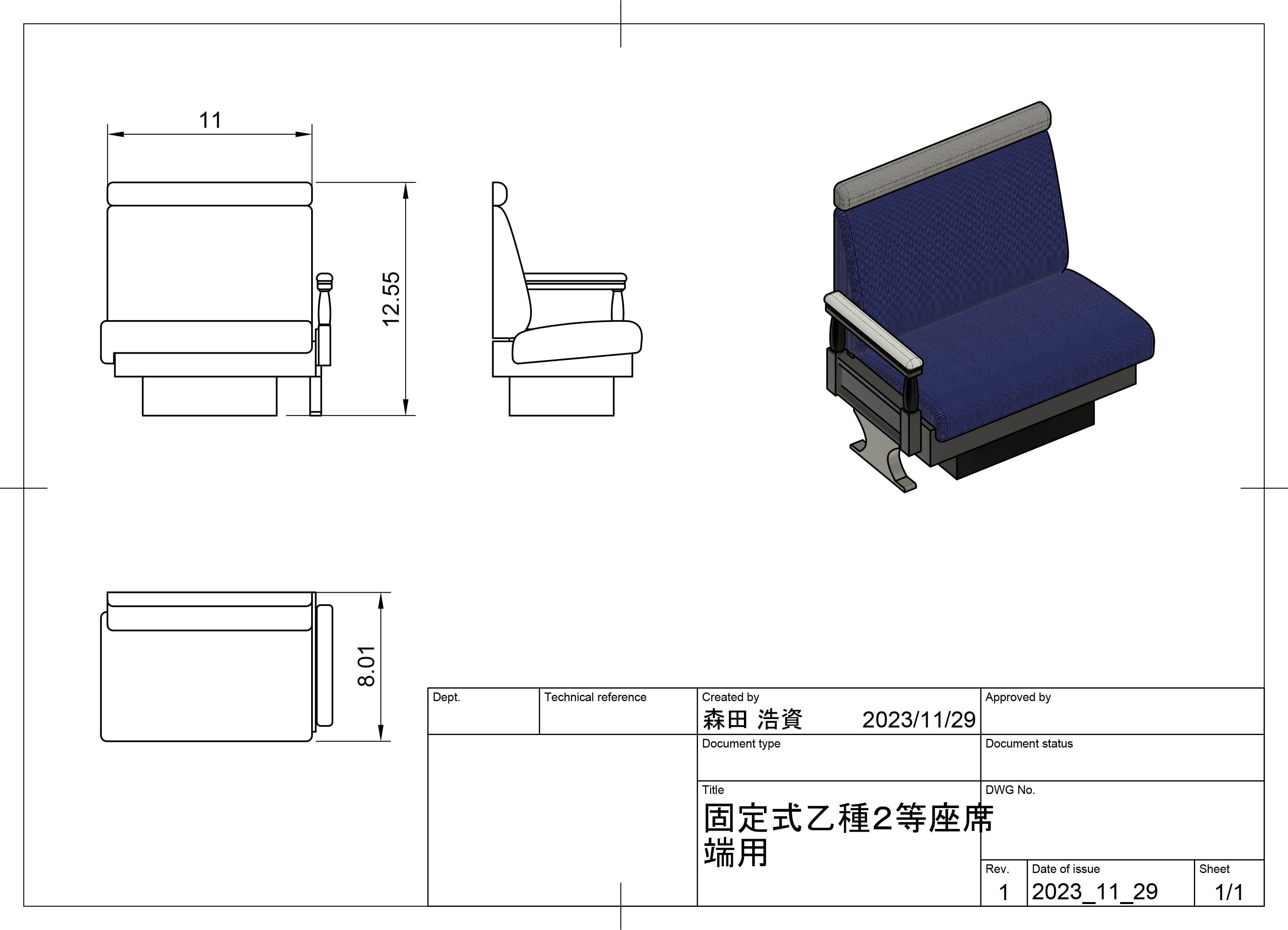 客室中側には、「乙型2等用固定座席(中用)」を別に購入してください↓
