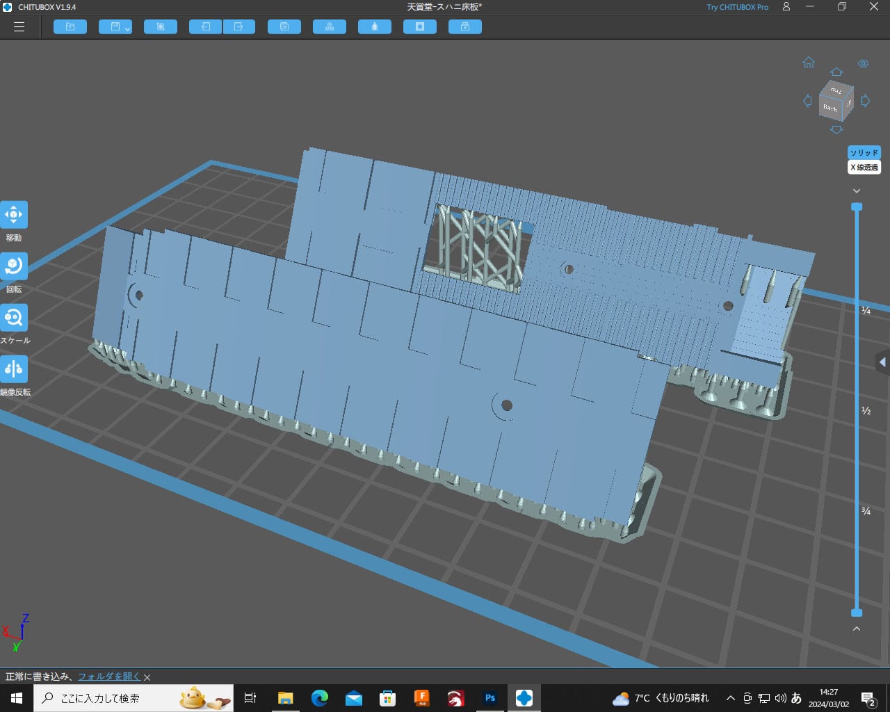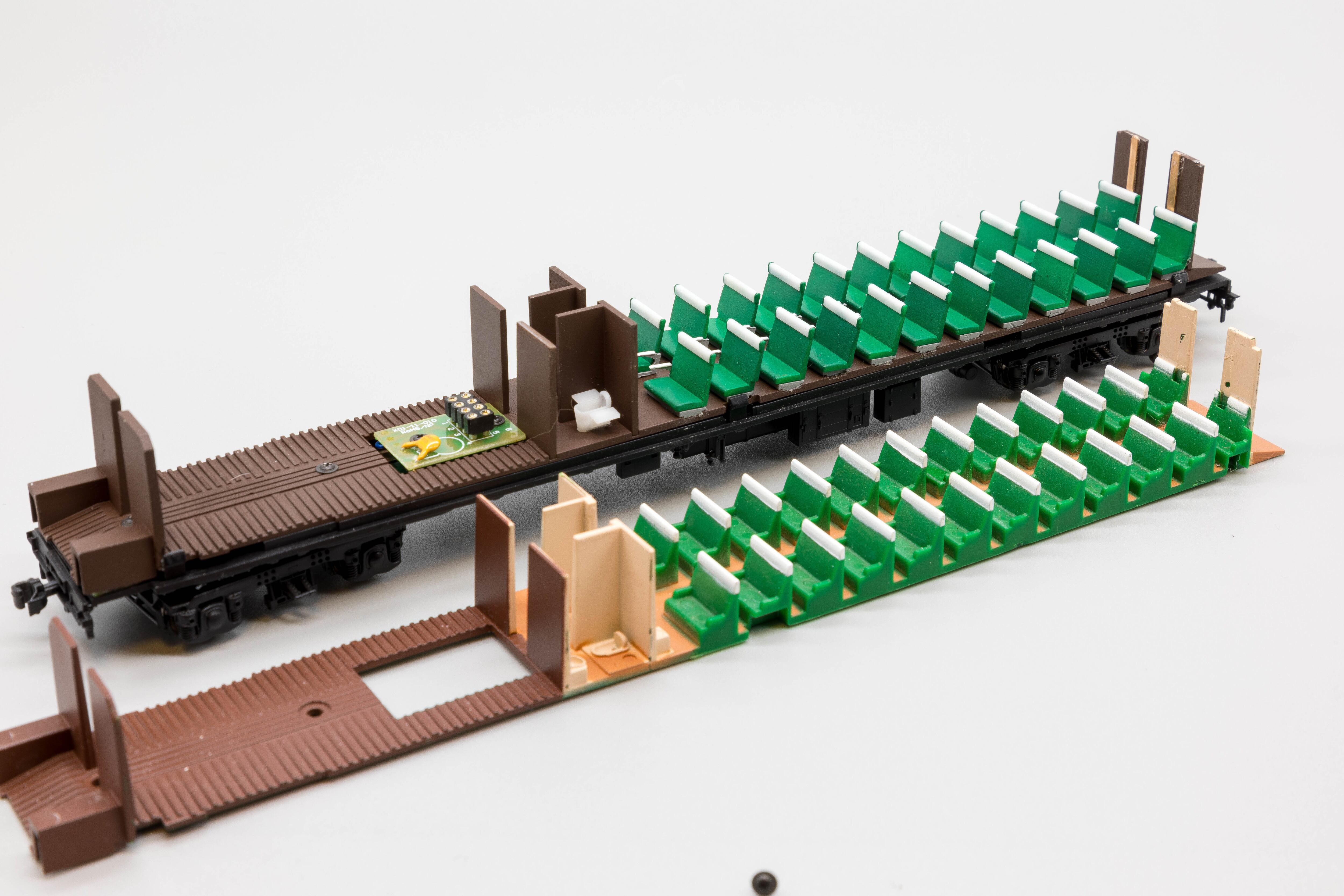 きづ模型工房で定評のある3Dプリント製の座席、床板、仕切り板で構成されています。